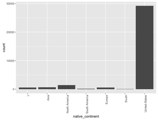 adult$native_continent = mapvalues(adult$native_country, from=c(" Mexico", " Canada", " Cuba",