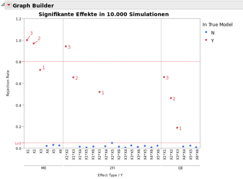 Simulation study as power analysis A simulation-based power analysis was performed to test the efficiency of the method. For this purpose, values for the target variable were simulated for a given DSD (6 continuous factors, 17 trials). The following model was used: