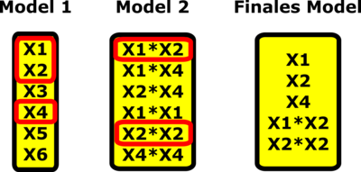 - In the second step, a regression is calculated with the residuals of the regression of the first step as the target variable. Influencing factors are all 2FIs and QE resulting from the active effects of the first step.