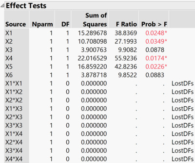 - In the second step, a model is estimated for the resulting 2FIs X1*X2, X1*X4, X2*X4, and for the QEs X1*X1, X2*X2, and X4*X4.