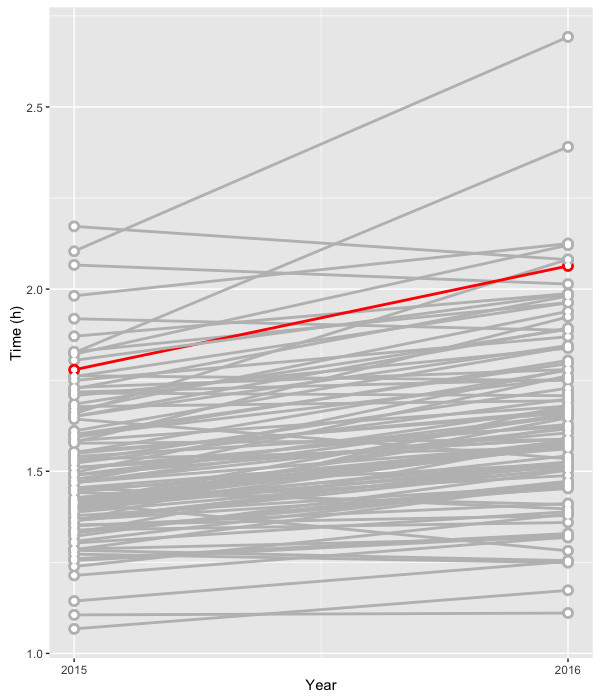 - most participants were slower in 2016 than in 2015.